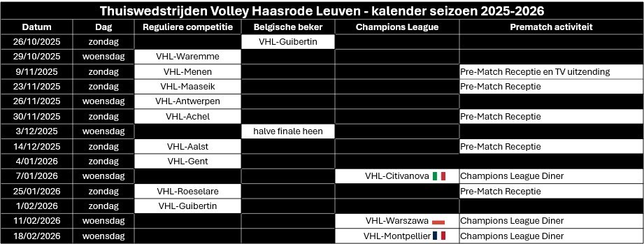 Naast de jeugdopleidingsploegen heeft VHL ook een fanionploeg op het allerhoogste niveau van België: onze Heren A treden aan in de Lotto Volley League. Daarnaast zijn we vertegenwoordigd in Nationale 2 en 3 bij de heren en in Nationale 1, 2 en 3 bij de dames.